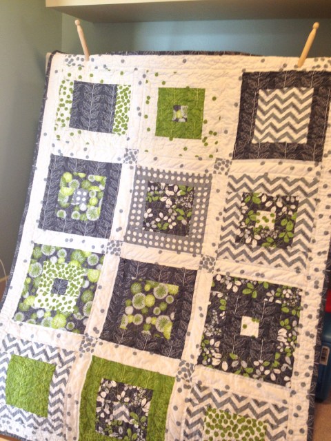 Its done…my first official quilt…I like it, but I don’t love it. This was my first shot at machine quilting and its very stressful! Some spots look great and others not so much. This is definitely something you get better at, so with that said…on to my next quilt. Keep your fingers crossed for me, I just want to love it!!