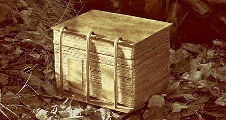 “They laid the plates on a table; it was a large table that stood in the room. Under this table there was a pile of plates as much as two feet high, and there were altogether in this room more plates than probably many wagon loads; they were piled up in the corners and along the walls. The first time they went there the sword of Laban hung upon the wall; but when they went again it had been taken down and laid upon the table across the gold plates; it was unsheathed, and on it was written these words: ‘this sword will never be sheathed again until the kingdoms of this world become the kingdom of our God and his Christ.’