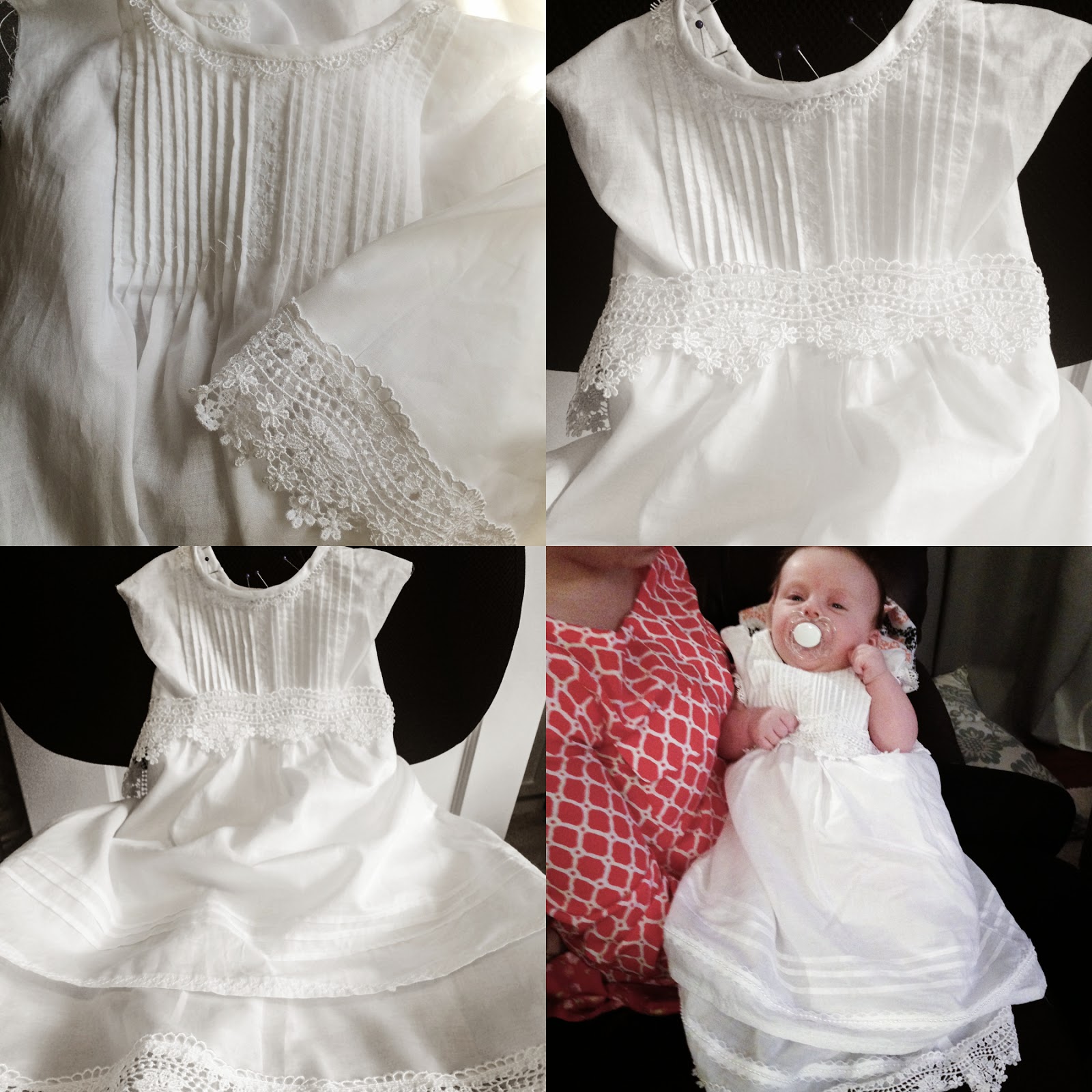 I wanted to make Ellie a blessing dress, one that would be treasured and passed down…I love how it turned out!! I searched Etsy for a pattern that would look old fashioned and found 2 that I loved…I used both to create the dress below. I also found the fabric on Etsy..it was a little spendie…$20 a yard, but I love it!!