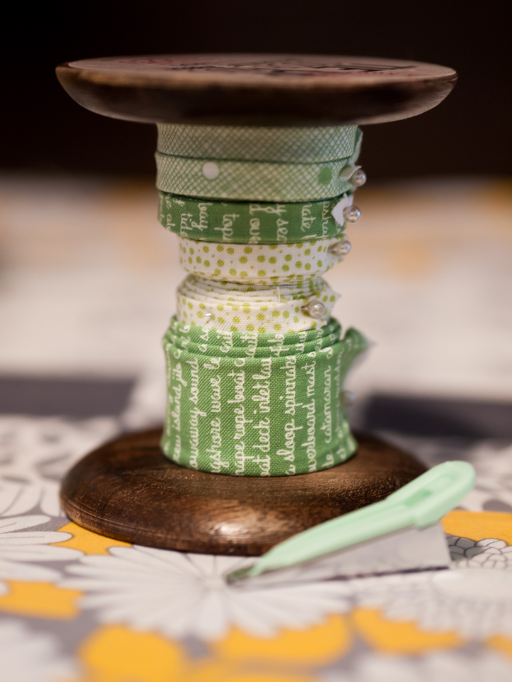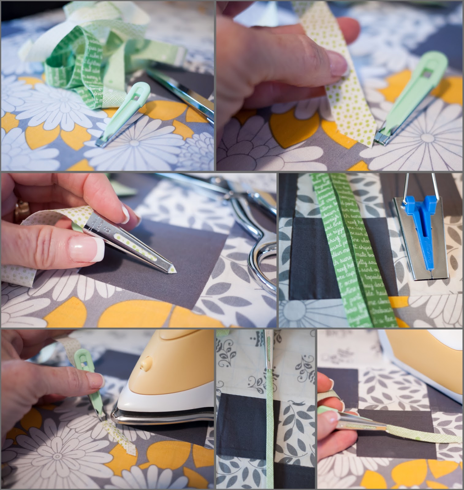 I am going to follow along with Bee in my Bonnet and make a quilt called Bloom. This is going to be the stems of the flowers we will be creating. I watched a tutorial on her blog on how to make bias tape, ordered the supplies and tried it! Look how fun!! Its easy pezie.