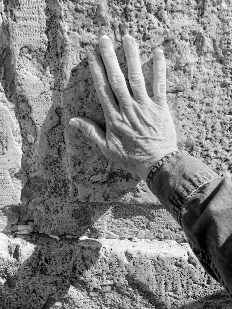 Then I notice the folded slips of paper. What words are on those notes, those slips of paper that are tucked into the gaps of the wall. What prayers have been written, what pleadings have been penned?